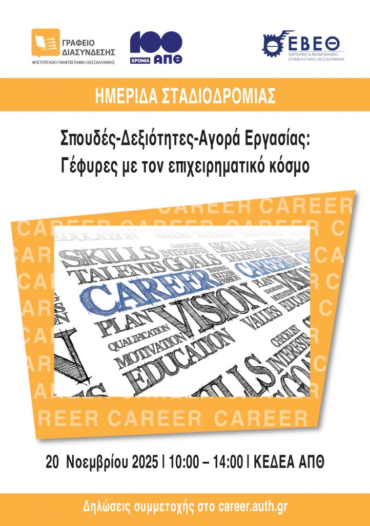 Έλα στην εκδήλωση σταδιοδρομίας που διοργανώνει το Γραφείο Διασύνδεσης ΑΠΘ με το Εμπορικό & Βιομηχανικό Επιμελητήριο Θεσσαλονίκης: