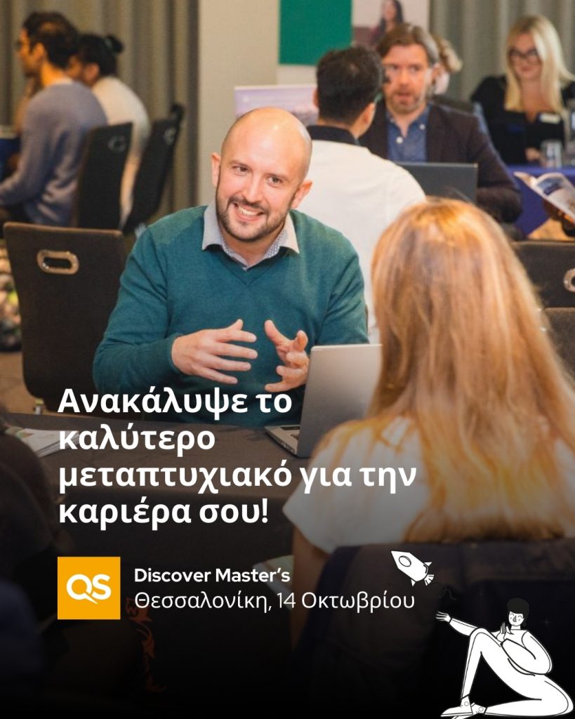 Η QS, εκδότης των Διεθνών Πινάκων Κατάταξης Πανεπιστημίων – QS World University Rankings, παρουσιάζει την Διεθνή Έκθεση Πανεπιστημίων για Μεταπτυχιακά και Διδακτορικά προγράμματα η οποία πρόκειται να πραγματοποιηθεί στην Θεσσαλονίκη την Τρίτη 14 Οκτωβρίου.